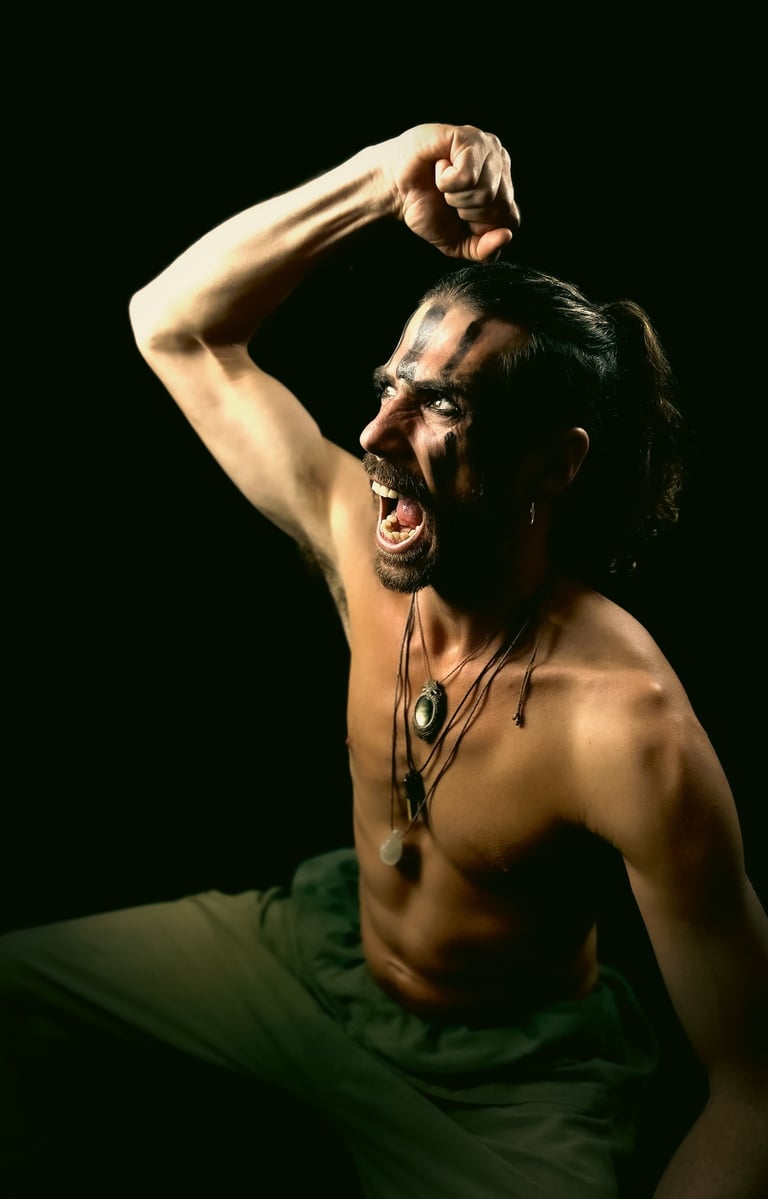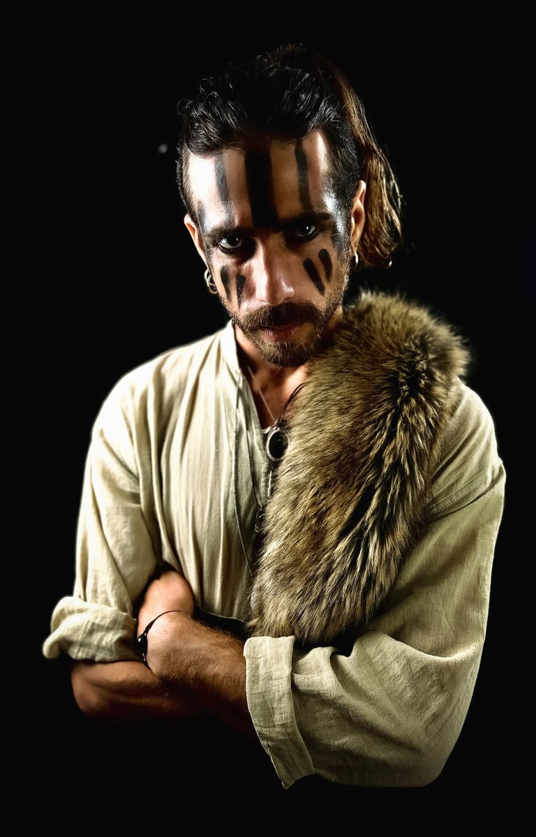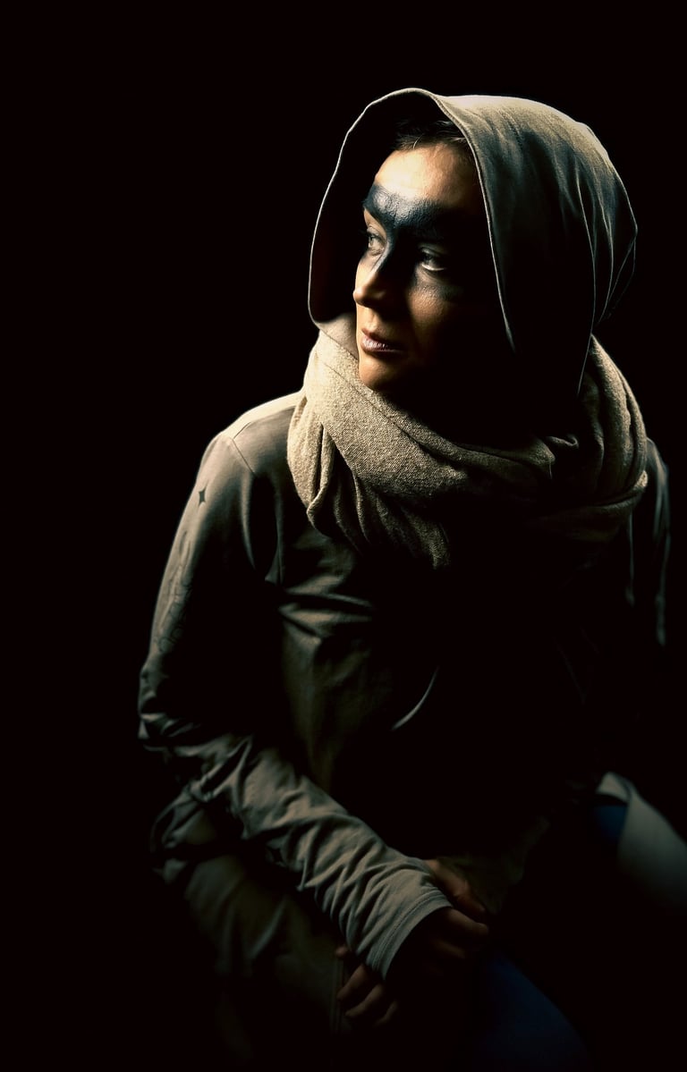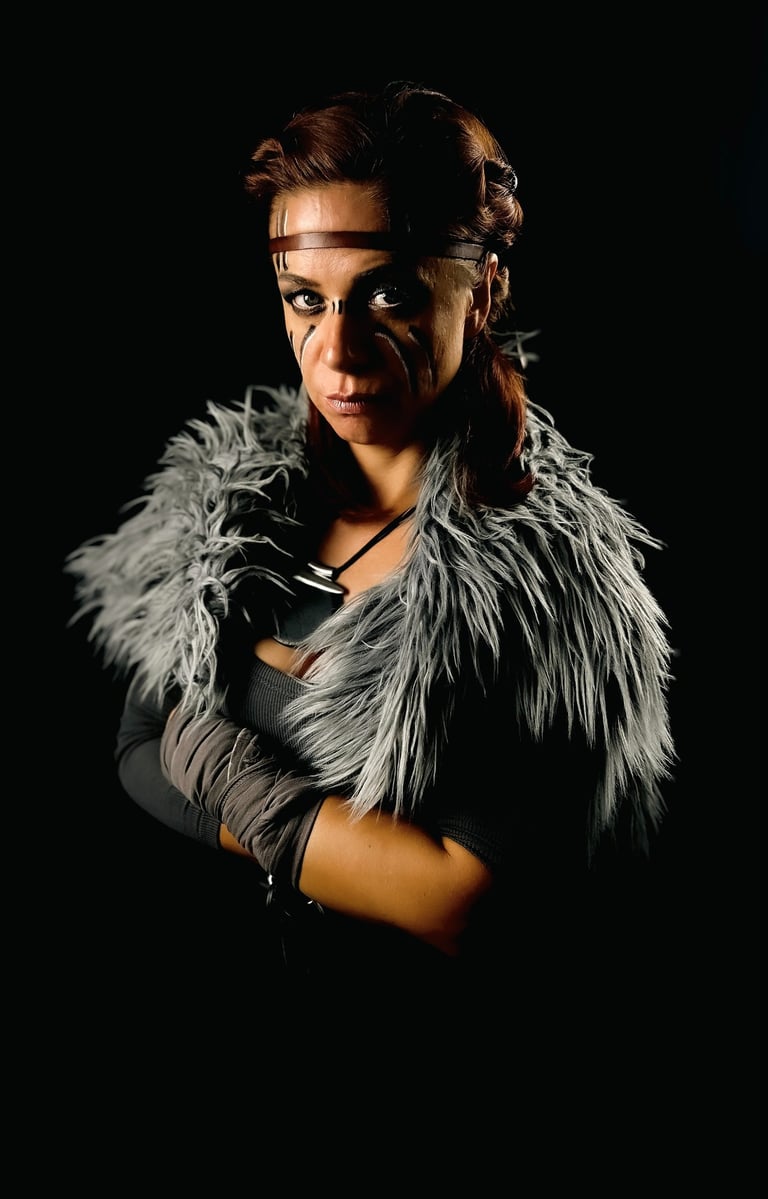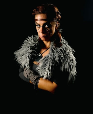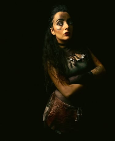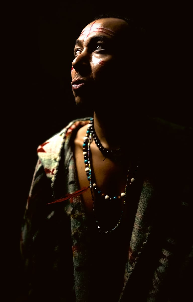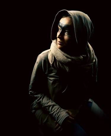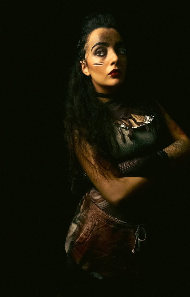 EXILE is a cinematic studio series created in the midst of PTSD. Through hand-made costumes, tribal makeup, and cinematic lighting, Serani transformed trauma into resilience. Each figure embodies the outsider - scarred yet unbroken - reflecting strength and survival in the face of exile.