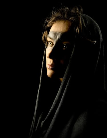 "My practice sits at the intersection of film and photography, using light, costume, and gesture to create experimental images that feel cinematic rather than documentary. I first began as a street and landscape photographer, drawn to natural light and fleeting moments. In 2024 I shifted into the studio, and built a simple setup where I could begin experimenting more deliberately with lighting, atmosphere, and constructed scenes.