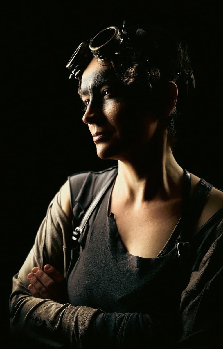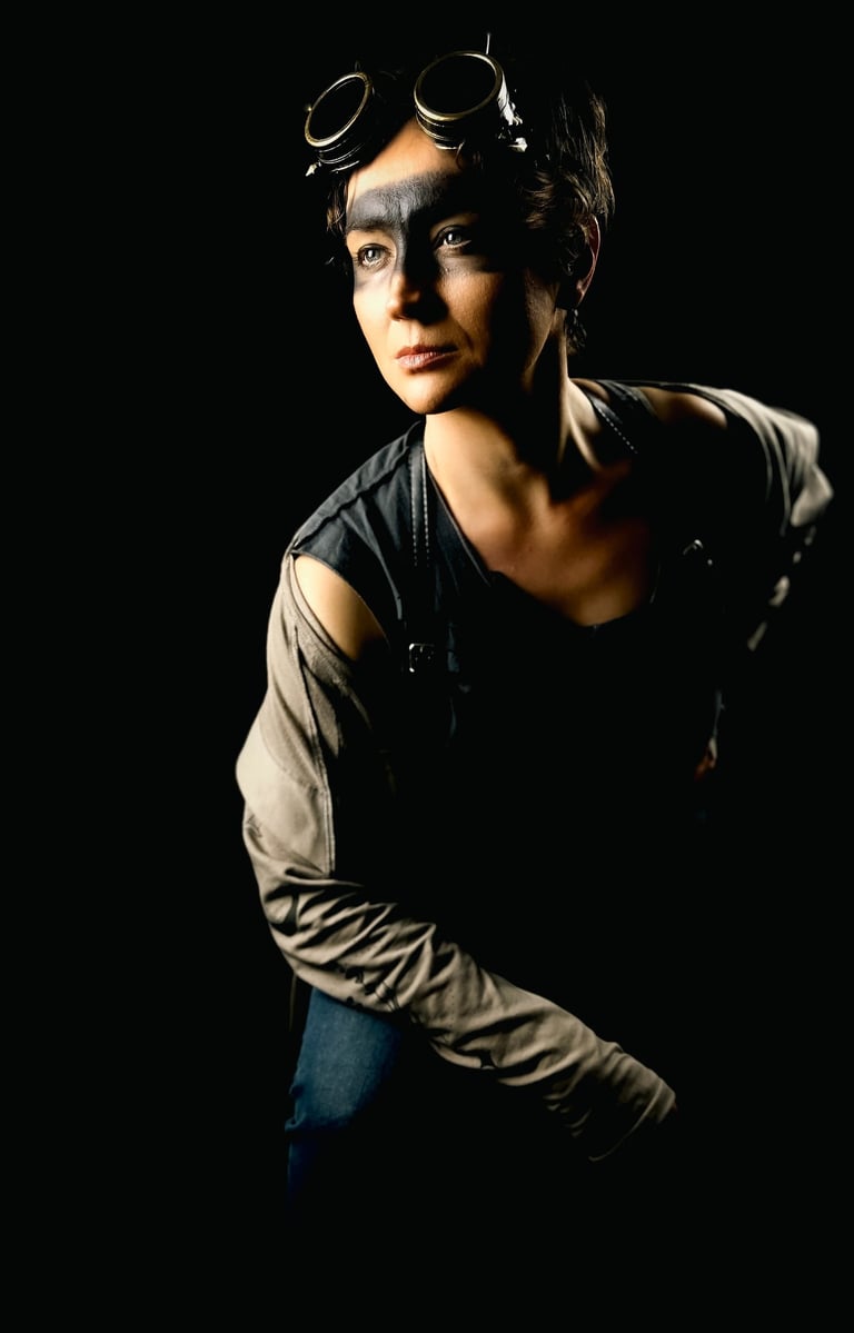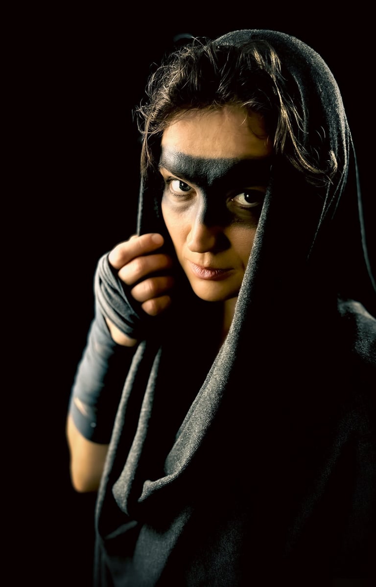 Serani is a filmmaker, commercial director, and emerging photographer based in Europe. Her work bridges cinema and still image, bringing a narrative intensity to experimental photography. Photography became both a playground and a lifeline — a way to translate her filmmaker’s eye into static frames that pulse with story. Rather than pursuing technical perfection, she embraces a cinematic approach: dramatic lighting, hand-crafted costumes, and tribal makeup that transform her sitters into characters inhabiting imagined worlds.